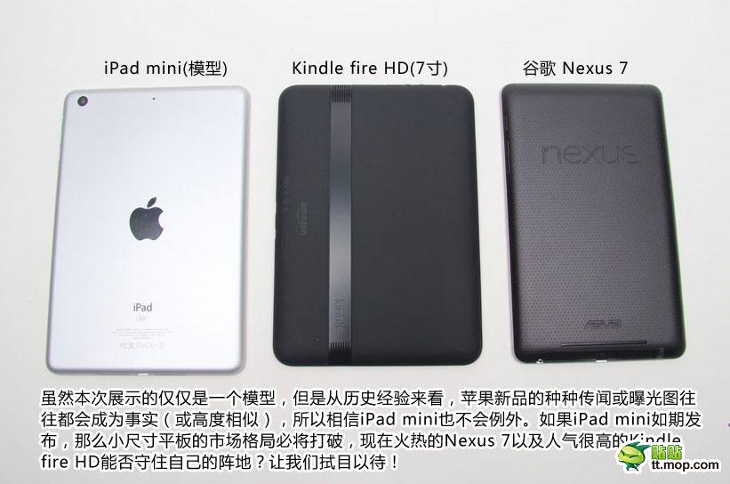 Selain itu, UkrainianiPhone menunjukkan gambar-gambar tersebut merupakan gambar asli iPad Mini yang di ambil di sebuah perusahaan yang terletak di China yang akan mengirim barang ke Foxconn. Dari foto-foto tersebut dapat kita lihat panel belakang dari iPad Mini yang terbuat dari alumunium sama dengan yang dipakai iPhone 5, layar LCD yang berukuran sekitar 16:9 dengan rasio 4:3. Selain itu adanya tempat menyimpan kartu SIM yang kecil berukuran Nano (yang sekarang digunakan di iPhone 5). Hal ini menunjukkan bahwa iPad Mini akan diproduksi dua versi yaitu Wifi dan Wifi+3G.